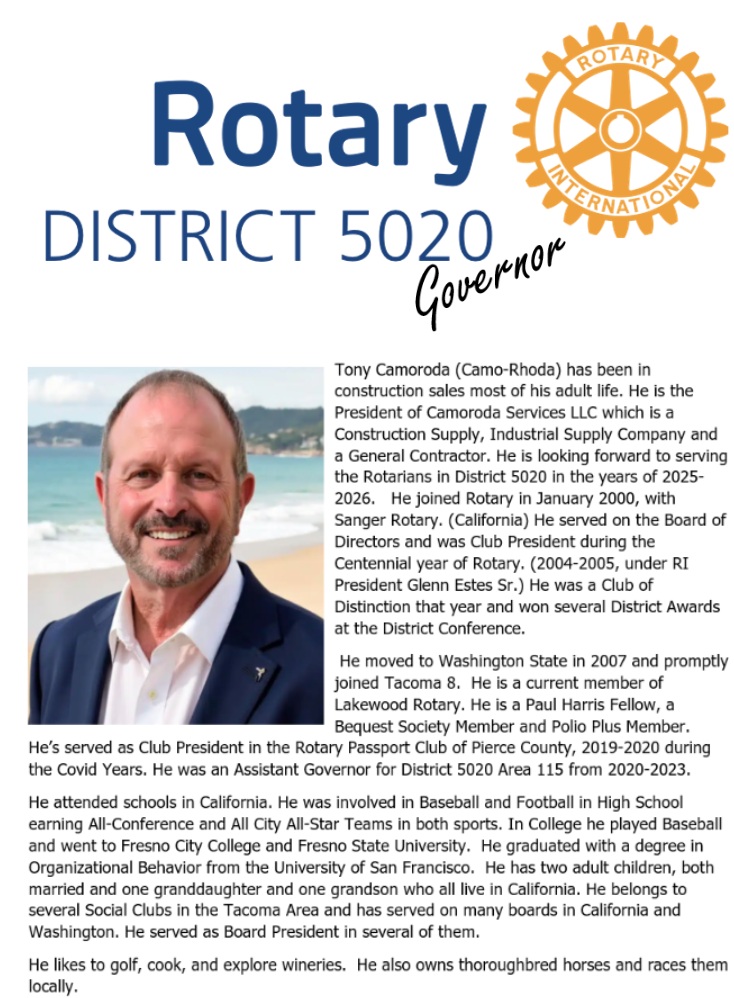 Tacoma Rotary #8 is the 8th oldest Rotary club in the world and was established in 1910.